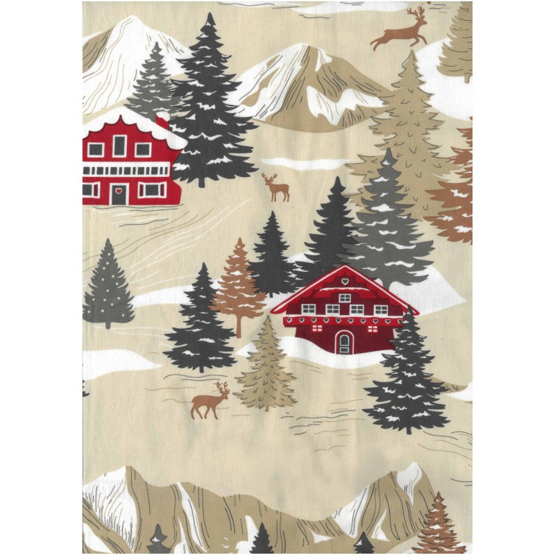 Son motif détaillé, représentant chalets en bois, sapins et montagnes enneigées, apporte un véritable esprit cocooning et nature à votre chambre. Les teintes chaudes de brun, beige et rouge évoquent l’ambiance chaleureuse des séjours à la montagne.